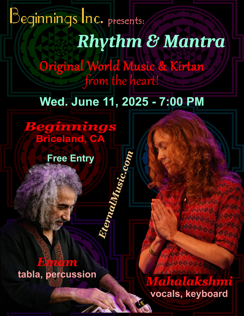 Sondra Ray & Markus Ray describe our offerings: "Emam and Mahalakshmi's music is beyond just inspirational; it is an offering of Pure Joy. Because they are in a state of Joy within themselves, they can lift everyone who listens to them into that vortex of feeling good. We need to be elevated in our Life into the Divine Realms. This is our real HOME. And Emam and Mahalakshmi can take us there." |