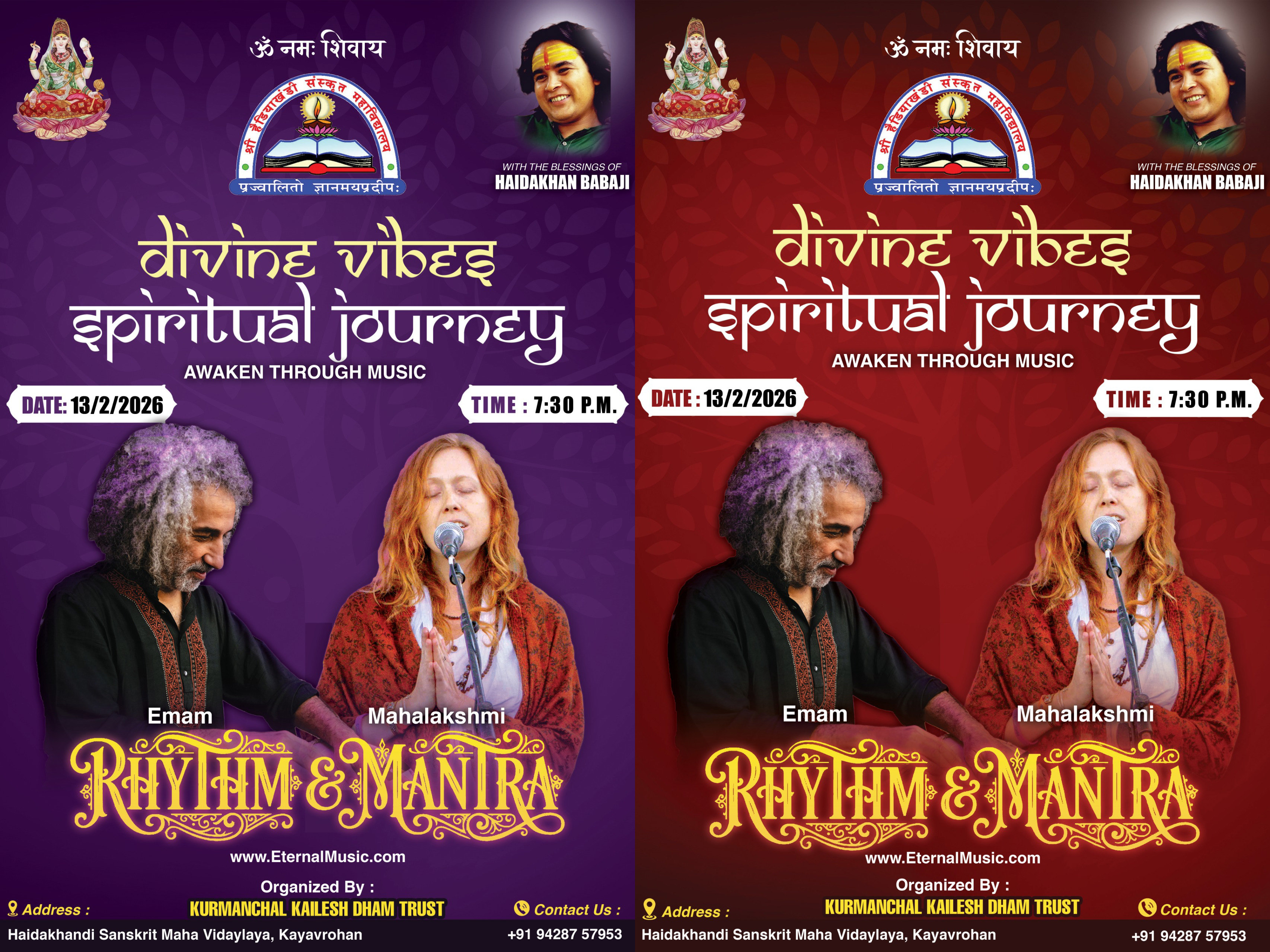 Music & Kirtan Friday 13th February/2026 - 7:30 PM Rhythm & Mantra Mahalakshmi (vocals, keyboard) Emam (tabla, percussion) Haidakhandi Sanskrit Maha Vidyalaya Kayavrohan, Gujrat (near Vadodara) +91-94287-57953 |