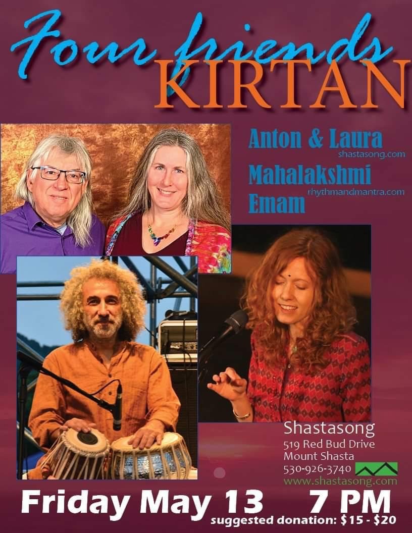 Kirtan & Music at Shastasong Studio Anton Mizerak (keyboard, harmonica), Laura (vocals) Mahalakshmi Maher (vocals, keyboard), Emam (tabla, dumbak) Shastasong Studio Mt Shasta, CA | |
